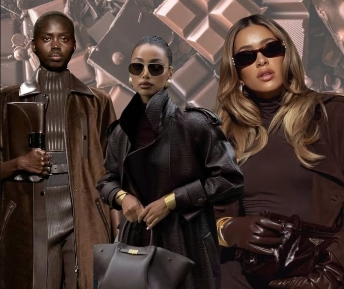 Anche gli accessori seguono il trend: borse, stivali, cinture e cappelli in marrone cioccolato diventano protagonisti di ogni look. Per un tocco glamour, scegli gioielli in oro caldo che esaltano la profondità della tonalità.
