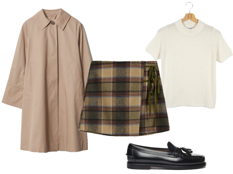 L’autunno profuma di check e trench color cammello. Scegli una minigonna scozzese e indossala con un maglione a coste bianco e un trench classico dal taglio sartoriale. Completa con un paio di mocassini con le nappe e calzini a vista per un tocco preppy che sa di campus inglese e passeggiate tra le foglie dorate.