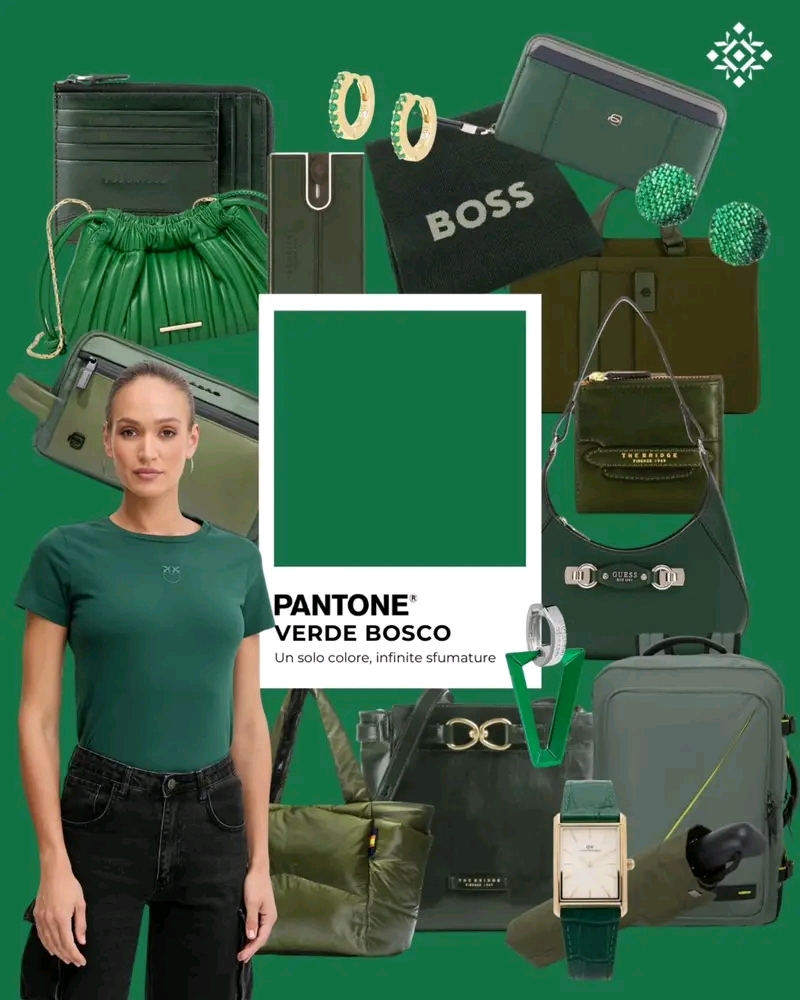 Dalla gonna fluida al cappotto che cattura la luce, fino alle borse che si trasformano in piccoli talismani chic, ogni pezzo in verde bosco racconta un inverno più sensuale, più consapevole, più femminile.