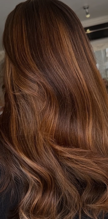 Dal caramello luminoso al rame soft, fino al più deciso red cinnamon, le sfumature vengono costruite su misura per valorizzare incarnato e texture del capello. Anche chi parte da basi fredde può ottenere un risultato avvolgente e armonioso, senza cambiamenti drastici.
